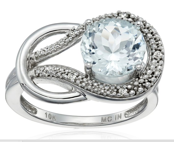 10k White Gold Gemstone and Diamond Accent Love Knot Ring